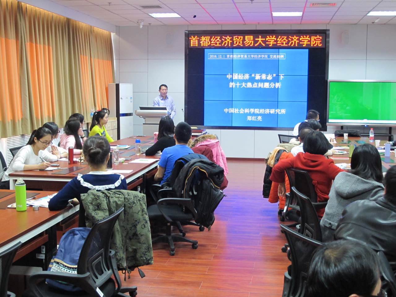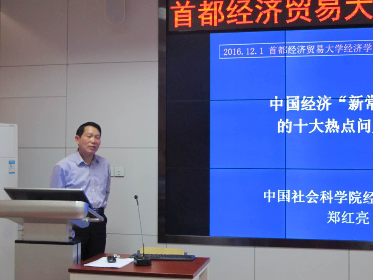 2016年12月1日下午,《经济研究》常务副主编郑红亮研究员应邀到经济学院举行了题为“中国经济‘新常态’下的十大热点问题分析”的专题讲座。讲座由经济学院院长郎丽华主持,副院长王军、赵家章及经济学院师生代表参加了讲座。