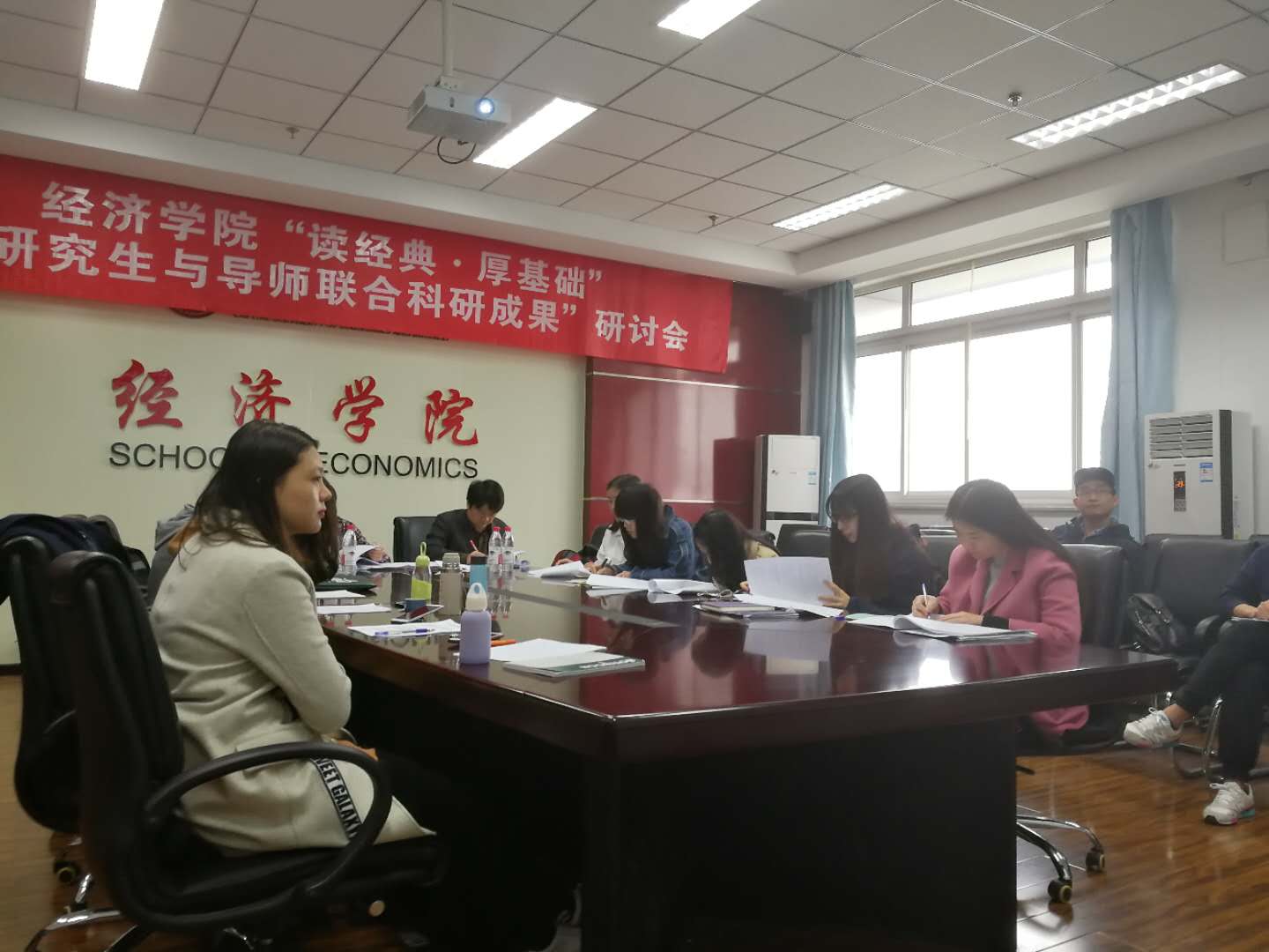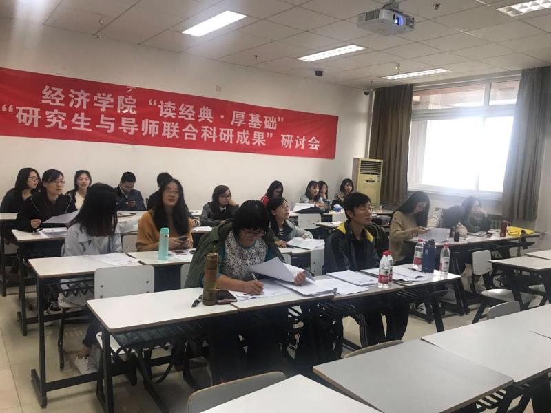 10月26日下午1点30分,经济学院第五届“读经典·厚基础”暨“研究生与导师联合科研成果”研讨会活动隆重召开。大会在五个分会场同时举行,分别是产业经济学分会场、国民经济学和世界经济学分会场、国际贸易学分会场、西方经济学和政治经济学分会场、数量经济学分会场,活动旨在培养增强研究生基本学术素养,提升学生论文写作能力。