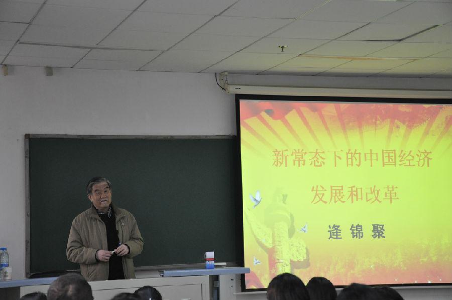 11月19日下午,应经济学院邀请,我校特聘教授、南开大学逄锦聚教授来到我校,在博学楼724教室为我校师生做了题为“新常态下的中国经济发展与改革”的学术报告。报告会由经济学院学术委员会主任张连城教授主持,经济学院教师和全校研究生、本科生及其他院系的师生近百人参加了报告会。