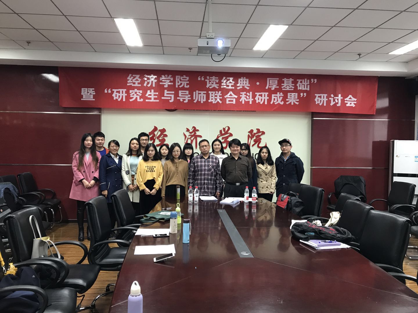 10月26日下午1点30分,经济学院第五届“读经典·厚基础”暨“研究生与导师联合科研成果”研讨会活动隆重召开。大会在五个分会场同时举行,分别是产业经济学分会场、国民经济学和世界经济学分会场、国际贸易学分会场、西方经济学和政治经济学分会场、数量经济学分会场,活动旨在培养增强研究生基本学术素养,提升学生论文写作能力。