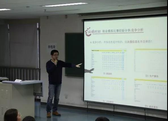由学术部承办的本届“尖烽时刻”全国商业模拟大赛宣讲会在博学楼第四阶梯教室举行,本次宣讲会邀请到两位曾经在该项比赛中取得优异成绩的两位同学—车跃、宋海涵来到会场,为听众具体讲解相关比赛事宜。