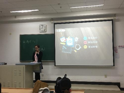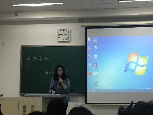 经济学院2014级经济学实验班、保送至中央财经大学区域经济学专业的张续介绍了保研项目的分类、途径、报名流程和准备的资料。随后她以中央财经大学为例介绍了暑期夏令营的情况,并鼓励积极参加目标高校组织的暑期夏令营。最后在介绍最令人头疼的面试环节时张续重点强调了在面试过程中思维逻辑清晰和着装得体的重要性。短短十几分钟的演讲干货满满,令我们受益匪浅。