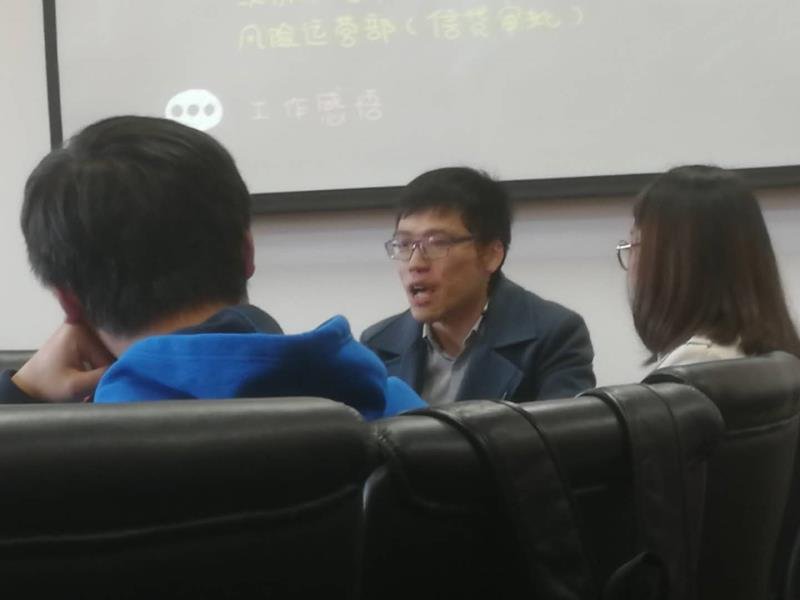 15:30,分享会正式开始。首先,就职于沃尔沃汽车金融(中国)有限公司的徐律分享了自己在实习和求职过程中的心得体会,他告诫参加分享会的同学们实习贵在坚持,六个月以上的实习时间才能让自己更多接触到岗位上的核心业务,同时他建议实习可以在小公司中进行,因为公司规模较小有利于大家更多的接触公司中的业务。接着,就职于华安证券股份有限公司投资银行总部北京业务部的丁久芳为大家详细介绍了自己实习期间的经历,并从中为同学们总结出许多有价值的经验,希望有意进入投行的同学们能够做个有心人,即使是最基础的工作,也要事事留心,从中积累经验与教训。此外,丁久芳还详细解答了同学们关于考证与课业的问题,希望同学们可以在空闲时间内多考一些有含金量的证书。“要敢于跳出自己的圈子”这是在普华永道会计师事务所工作的张显给参加分享的同学们的建议,他希望大家在选择时不要随波逐流,要能吃苦,强调了工作品质的重要性。在提问环节过程中,本次分享会的嘉宾们耐心地解答了同学们提出的问题,给同学们提供了很大的帮助。