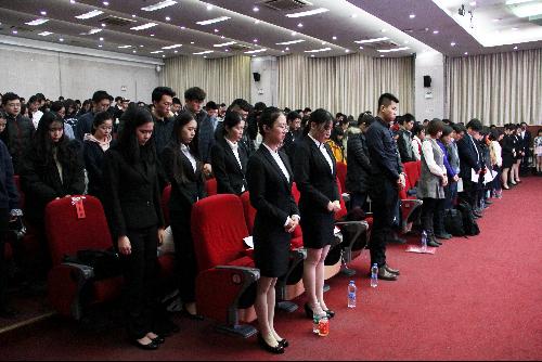 今天是南京大屠杀惨案发生80周年,也是第四个南京大屠杀死难者国家公祭日,大会伊始,参会者全体起立,为死难者和先烈默哀,缅怀革命先烈和民族英雄。