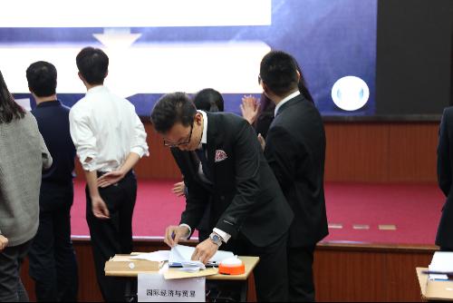第二环节“风雨同舟”共分为四个回合,每个回合在班级内随机选取1名同学作答。大屏幕随机抽取同学时现场气氛热烈,被幸运抽中的同学们依次上台答题,认真思考,沉着应战,激烈的赛况后,经济学一班暂时领先。